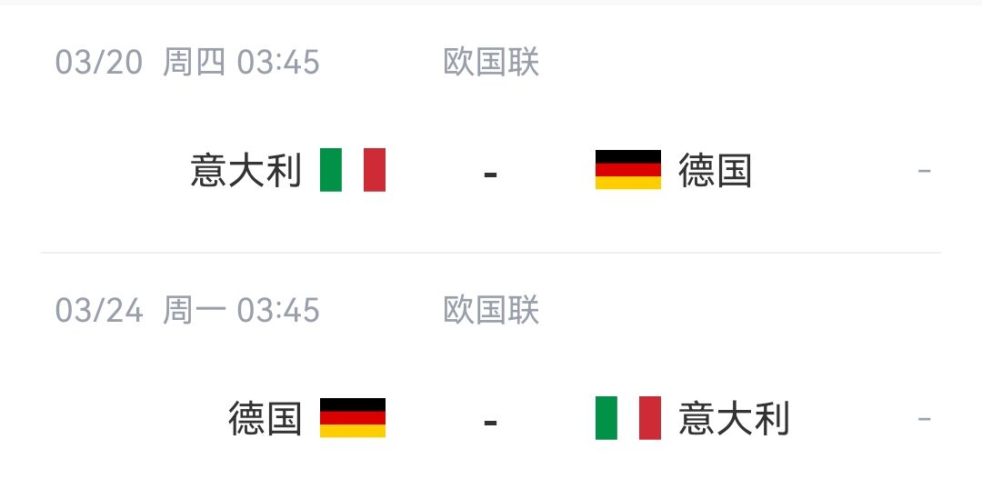 此前的歐國聯(lián)小組,德國隊力壓荷蘭、匈牙利和波黑以小組第一晉級淘汰賽,在1/4決賽中,他們要面對的是意大利隊。德國與意大利將在北京時間3月20日和3月24日凌晨進行兩回合主客場的交鋒。