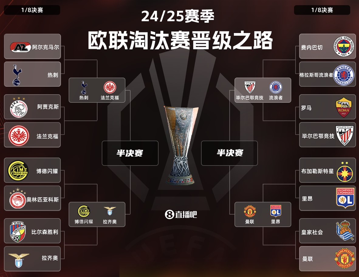 2025-03-14 07:00:10??歐聯(lián)8強對陣:曼聯(lián)vs里昂,流浪者vs畢巴,熱刺vs法鷹
