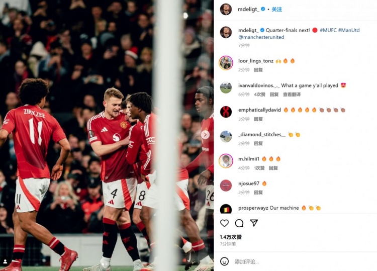 2025-03-14 07:00:20開場送點!德里赫特社媒和隊友相擁慶祝照:晉級八強戰(zhàn)!