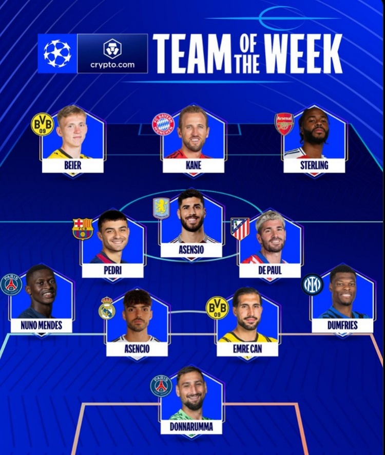 2025-03-14 07:01:44歐冠官方本輪最佳陣:凱恩領(lǐng)銜,佩德里、斯特林、多納魯馬在列
