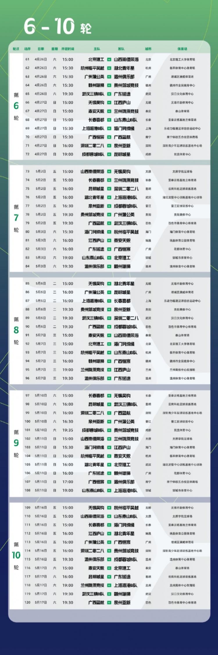 2025-03-14 14:00:56中乙新賽季預賽階段賽程公布:3月22日開幕,貴陽承辦開幕式