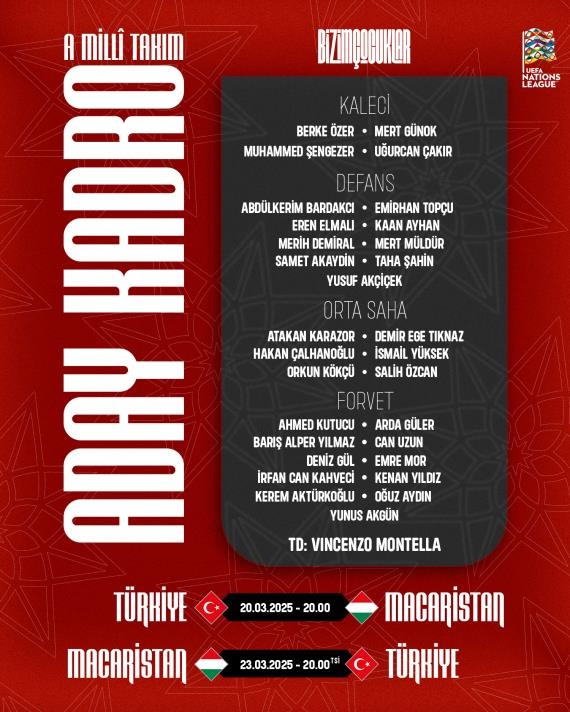 2025-03-14 21:00:07土耳其歐國(guó)聯(lián)名單:恰爾汗奧盧領(lǐng)銜,居勒爾、伊爾迪茲在列
