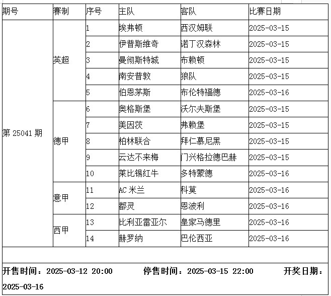 2025-03-14 21:00:46傳足勝負(fù)彩第25041期看點:米蘭主場爭勝 皇馬遇地獄客場
