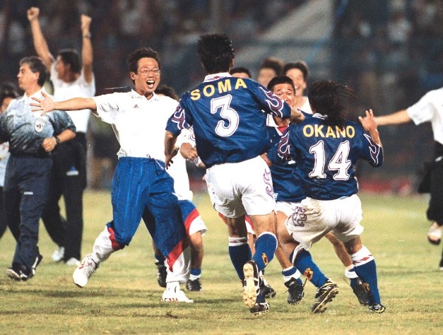 附加賽在馬來(lái)西亞新山舉行,對(duì)手是強(qiáng)大的伊朗隊(duì)。1997年11月16日,日本隊(duì)在附加賽常規(guī)時(shí)間與伊朗戰(zhàn)成了2-2,加時(shí)賽第118分鐘,中田英壽禁區(qū)前連續(xù)盤帶過(guò)人后遠(yuǎn)射被撲出,替補(bǔ)出場(chǎng)的岡野雅行補(bǔ)射得手,最終日本隊(duì)3-2絕殺伊朗,隊(duì)史首次殺進(jìn)世界杯!