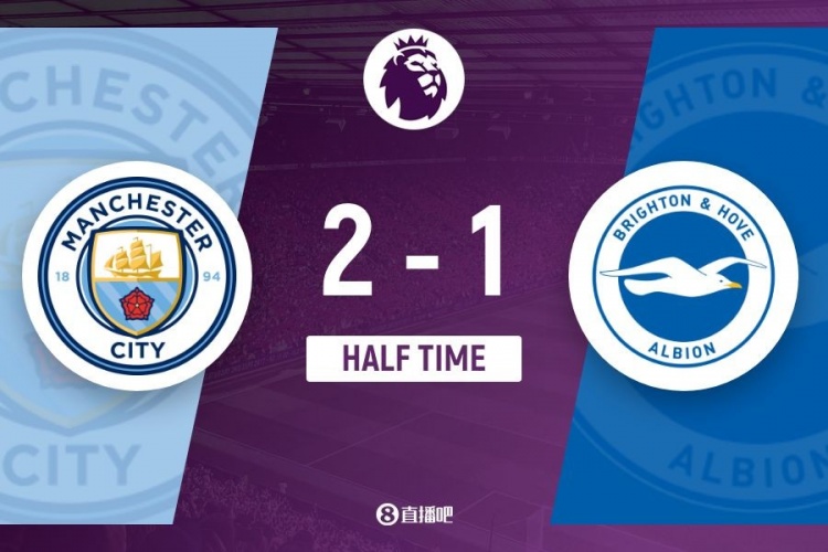 上半場(chǎng)傷停補(bǔ)時(shí)4分鐘,半場(chǎng)結(jié)束,曼城暫2-1布萊頓。