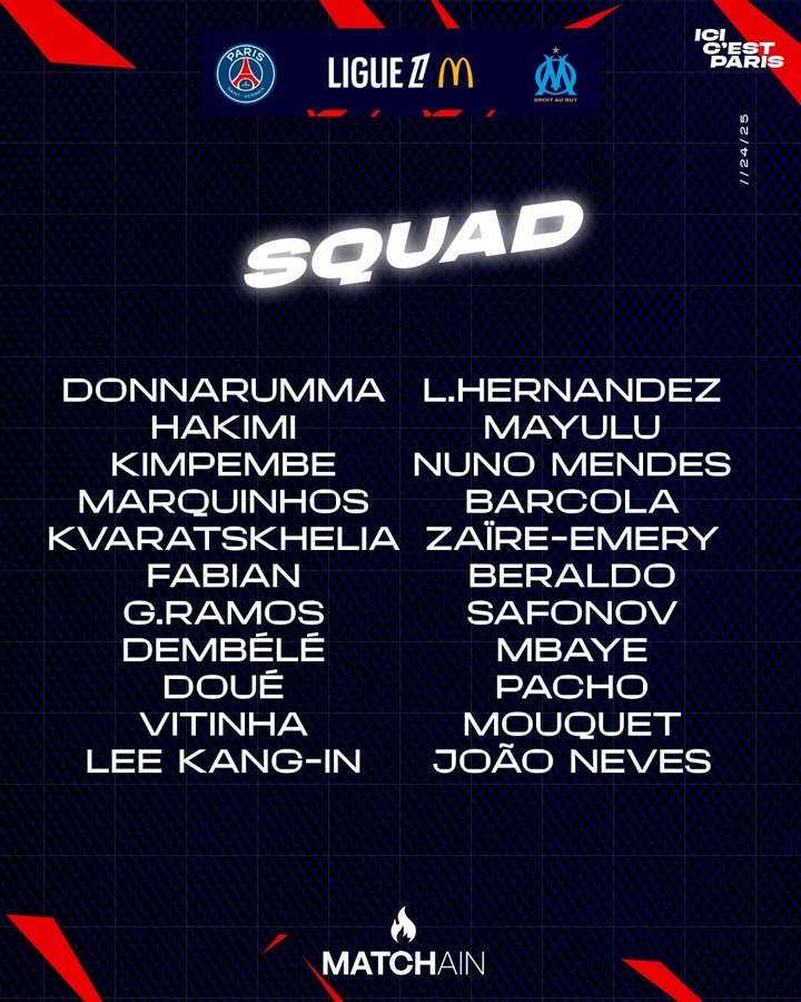 2025-03-16 21:01:30巴黎戰(zhàn)馬賽大名單:K77、登貝萊、內(nèi)維斯、維蒂尼亞領(lǐng)銜