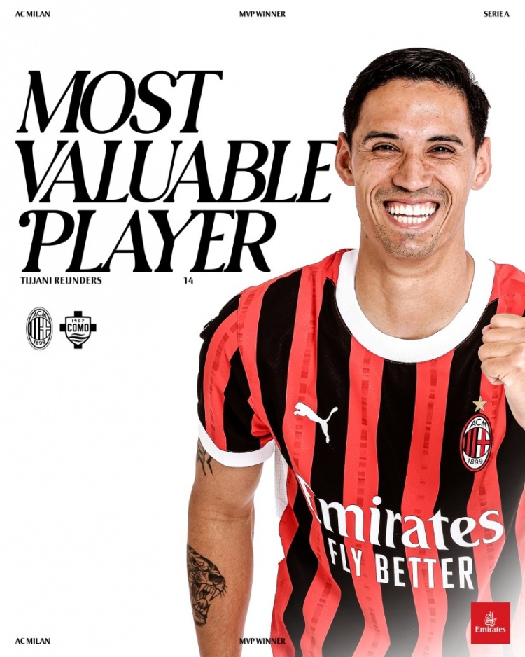 2025-03-16 21:01:38對陣科莫傳射建功,賴因德斯當(dāng)選本場比賽米蘭隊(duì)內(nèi)最佳球員