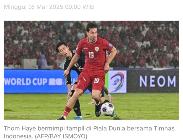 3月16日訊 據(jù)印尼媒體報(bào)道,印尼歸化國(guó)腳哈耶在接受采訪時(shí)談到了自己的世界杯夢(mèng)想。