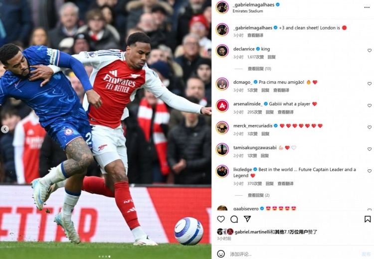 2025-03-17 07:00:08當(dāng)選全場最佳,加布里埃爾社媒曬照:零封取勝,倫敦是紅色的!