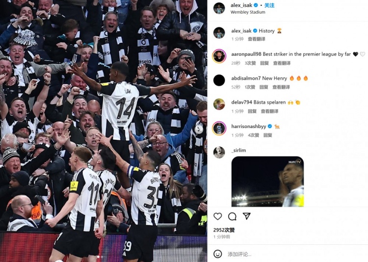 3月17日訊 紐卡在聯(lián)賽杯決賽2-1擊敗利物浦,時(shí)隔70年再次奪冠,進(jìn)球功臣伊薩克也在賽后通過(guò)社媒慶祝。