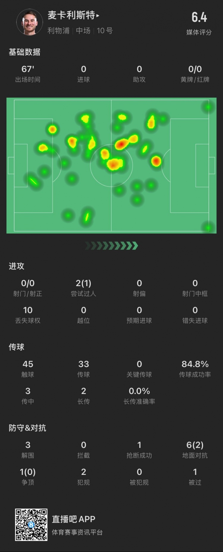 3月17日訊 本賽季聯(lián)賽杯決賽,利物浦對陣紐卡的比賽正在進(jìn)行。麥卡利斯特在第64分鐘被換下場,目前只獲評6.4分。