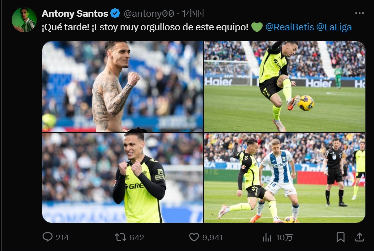 2025-03-16 23:54:462025年03月16日 讓二追三!貝蒂斯3-2逆轉(zhuǎn)萊加內(nèi)斯各賽事6場5勝 安東尼狂飆造絕殺