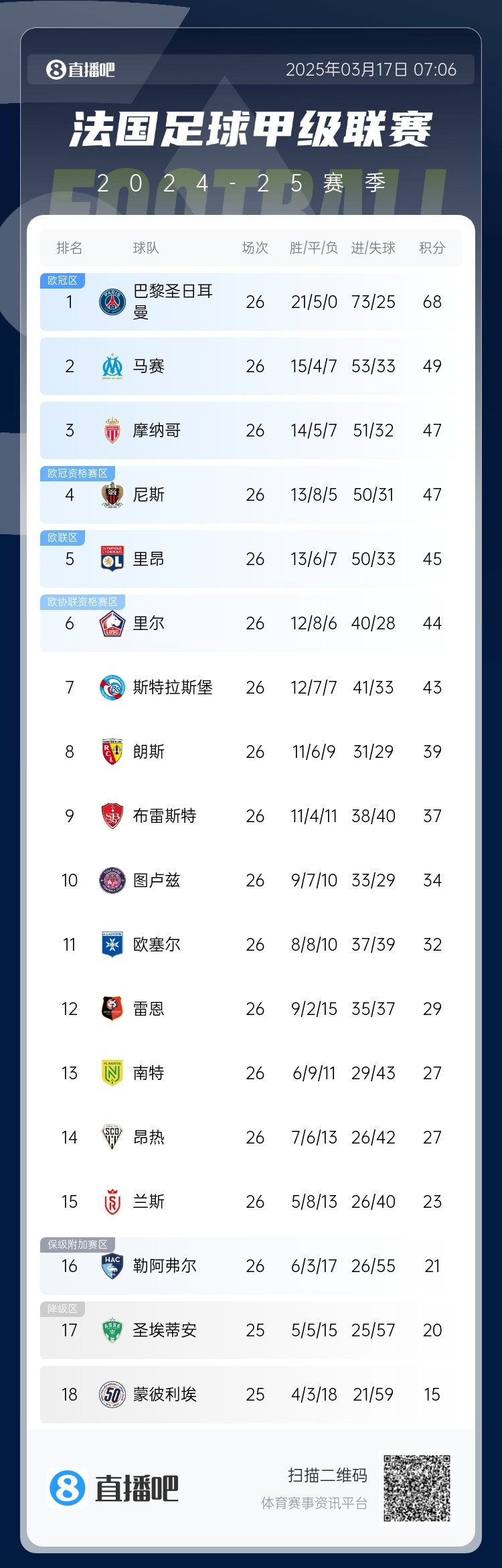 2025-03-17 14:02:16法甲榜首對決獲勝&領先19分,巴黎最快下一輪就能提前奪冠