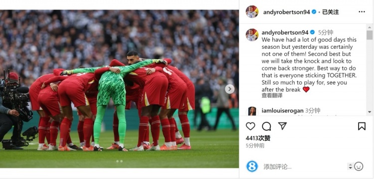 2025-03-17 21:01:31羅伯遜談無緣聯(lián)賽杯冠軍:我們將接受這次打擊,以更強大姿態(tài)回歸