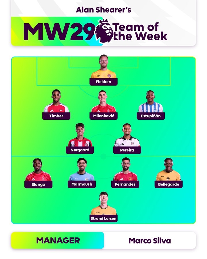 2025-03-18 07:00:51希勒評本輪英超最佳陣容:B費領銜,廷伯、馬爾穆什、佩雷拉入選