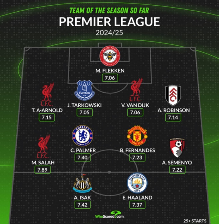 2025-03-19 21:01:17Whoscored評本賽季英超至今最佳陣:薩拉赫領(lǐng)銜,哈蘭德&B費(fèi)在列