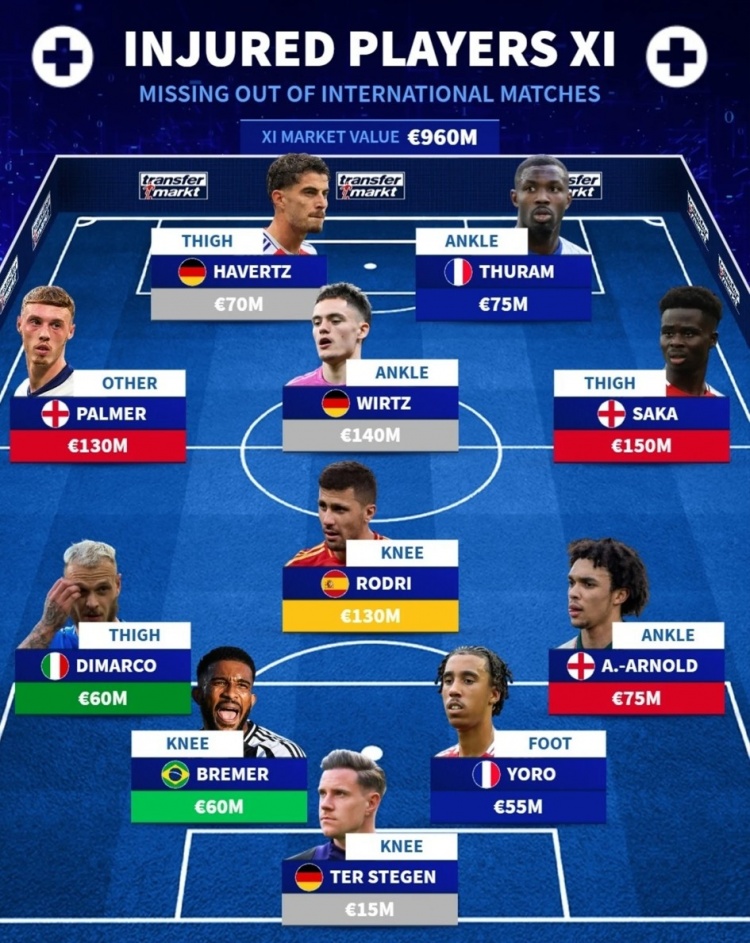 2025-03-20 14:02:10德轉(zhuǎn)列傷缺國(guó)家隊(duì)陣容:薩卡、維爾茨、羅德里在列,總價(jià)9.6億歐