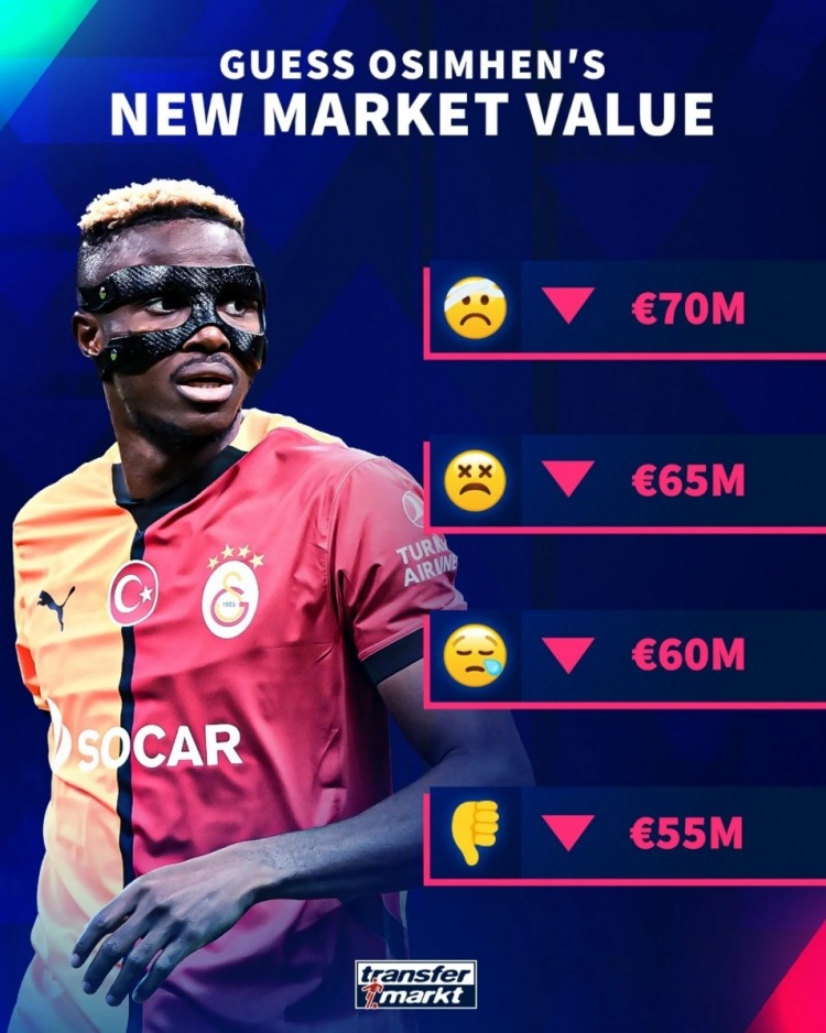 2025-03-20 14:02:13確定下跌!德轉預熱奧斯梅恩身價變化,最低降至5500萬歐元