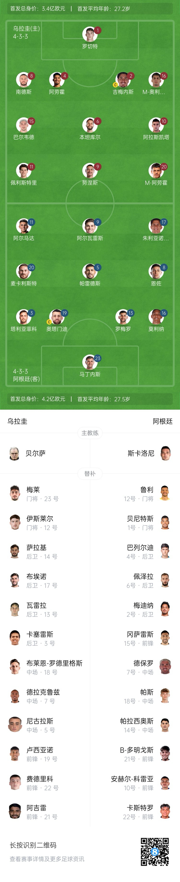 2025-03-22 07:00:16阿根廷vs烏拉圭首發(fā):小蜘蛛PK努涅斯,巴爾韋德、恩佐先發(fā)