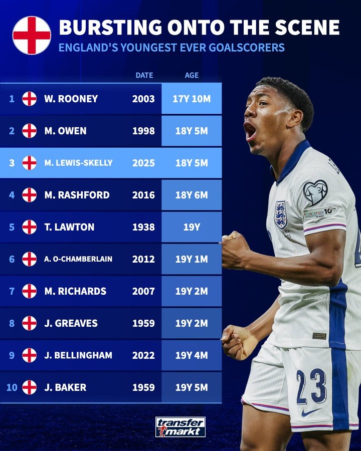 2025-03-22 21:00:4918歲5個月!斯凱利是英格蘭隊史第3年輕進球者,僅次魯尼&歐文