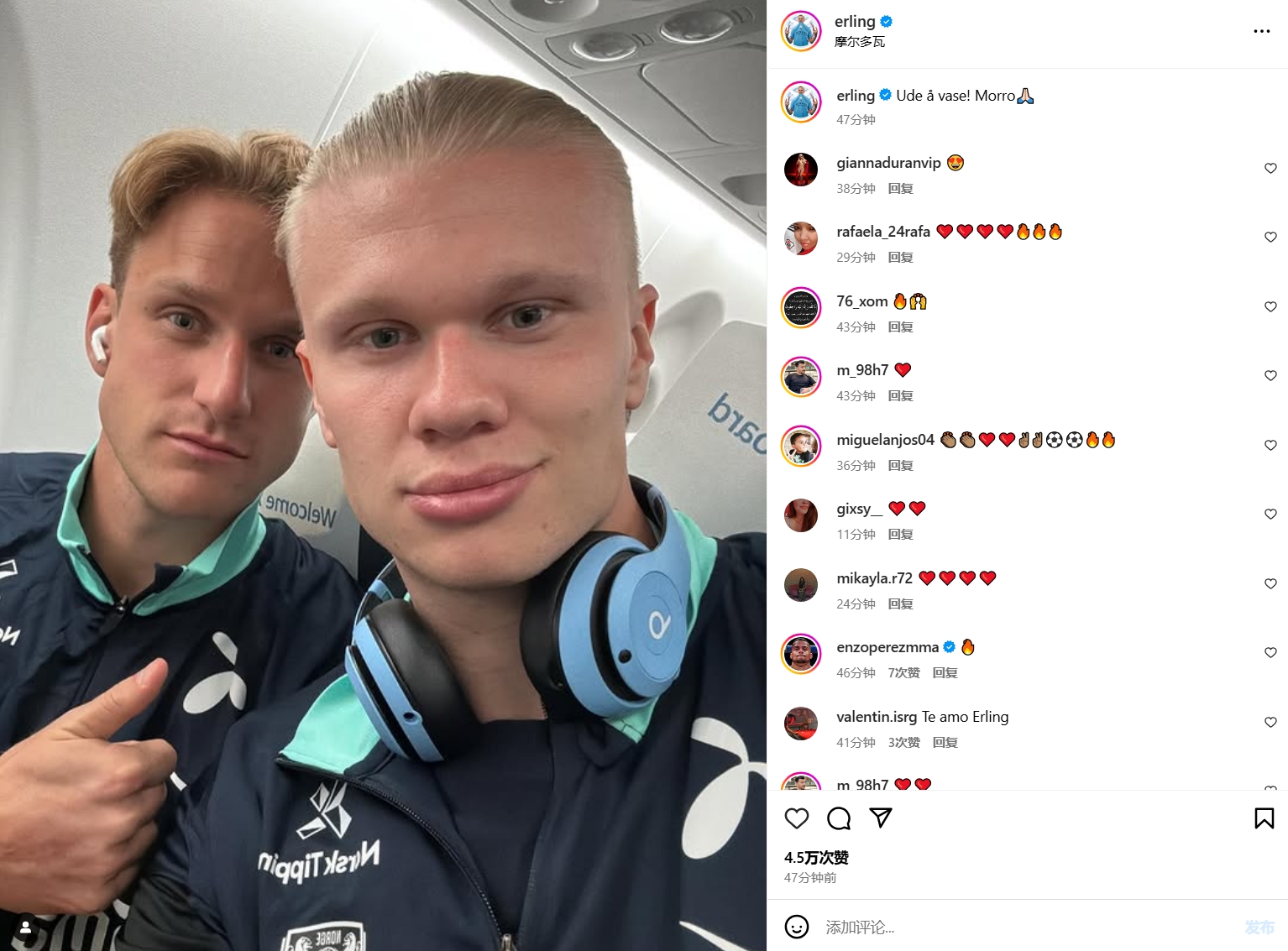 2025-03-23 07:00:09大勝過后心情好!哈蘭德社媒曬與隊(duì)友合照:出去瞎逛,有趣