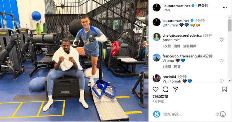 2025-03-23 21:00:29藍(lán)黑雙鋒!勞塔羅社媒曬與小圖拉姆健身合照