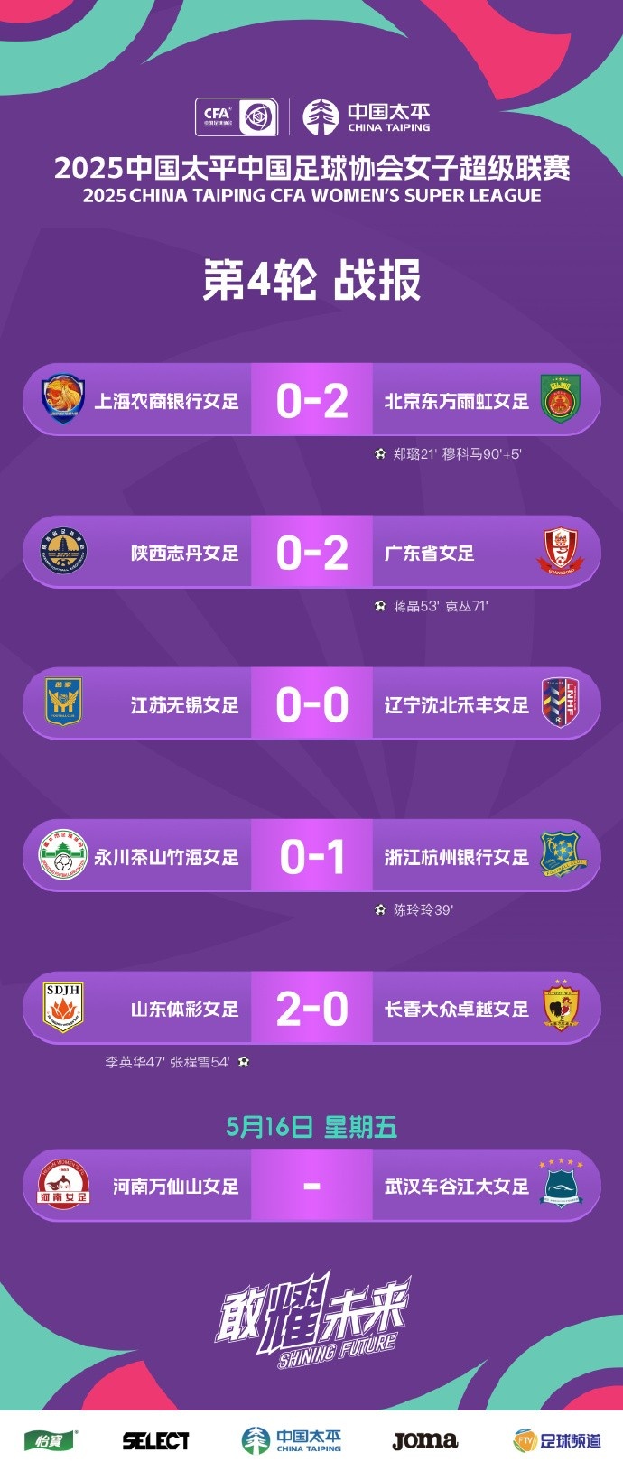2025-03-23 21:00:422025中國(guó)太平女超聯(lián)賽第4輪戰(zhàn)報(bào) ???
