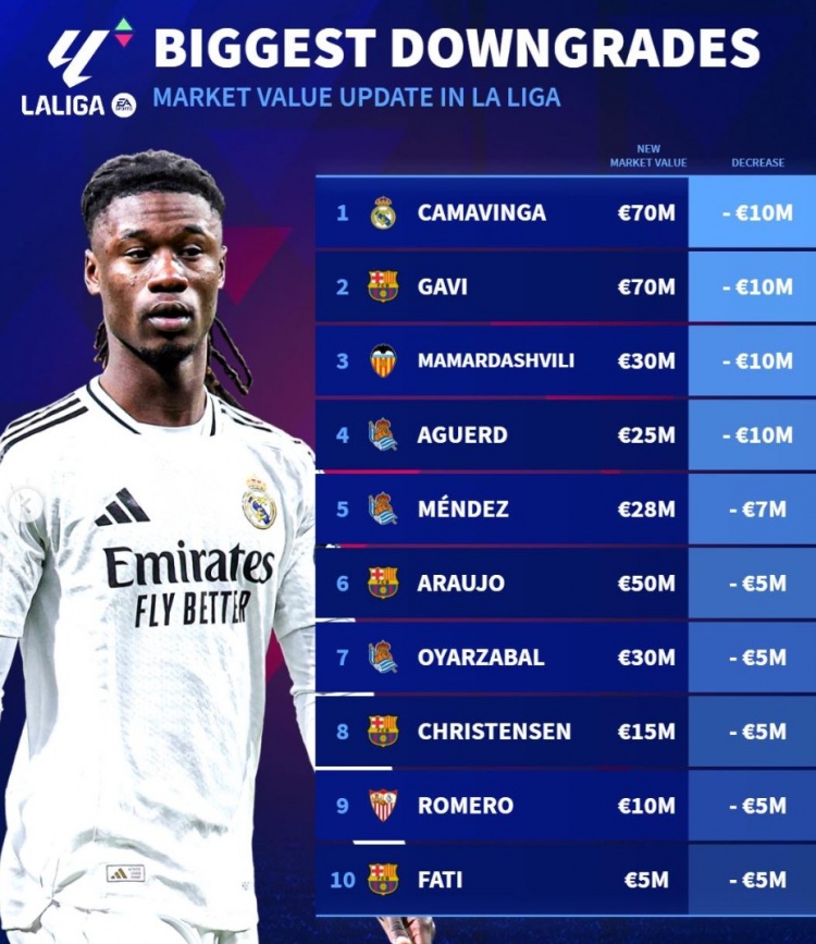 2025-03-24 07:01:07西甲身價貶值榜:加維、法蒂領(lǐng)銜巴薩4將,卡馬文加&瑪瑪達(dá)在列