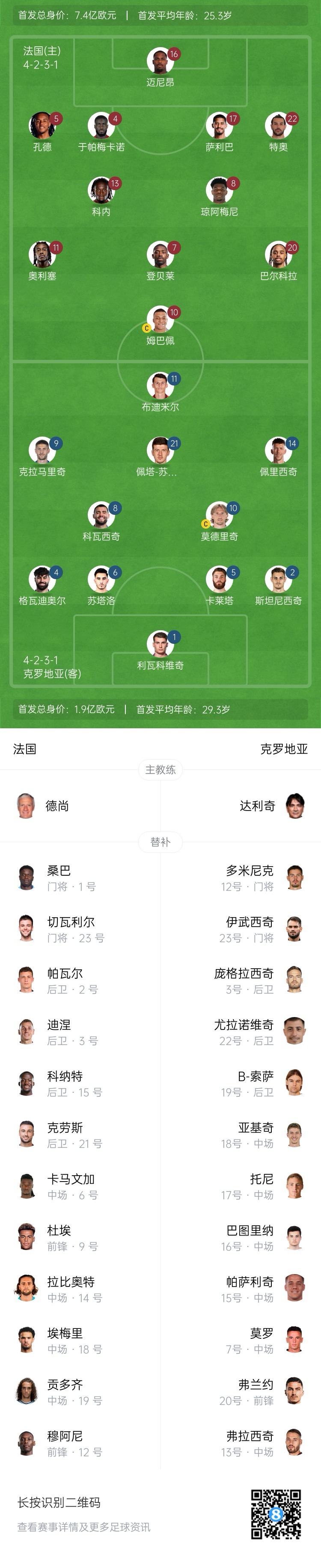 2025-03-24 07:01:19法國vs克羅地亞首發(fā):姆巴佩、登貝萊、巴爾科拉先發(fā),魔笛出戰(zhàn)