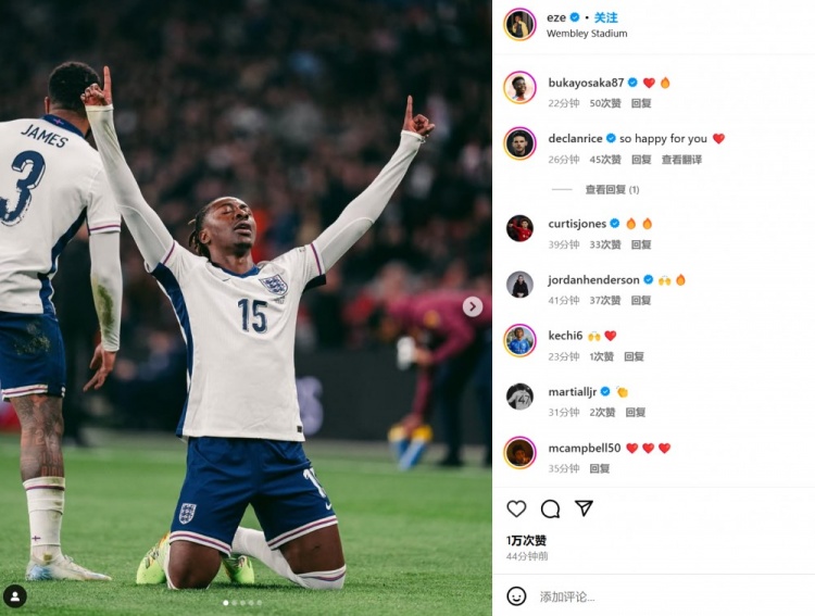 2025-03-25 14:01:51同場(chǎng)打進(jìn)英格蘭隊(duì)處子球!里斯-詹姆斯&埃澤社媒曬照紀(jì)念