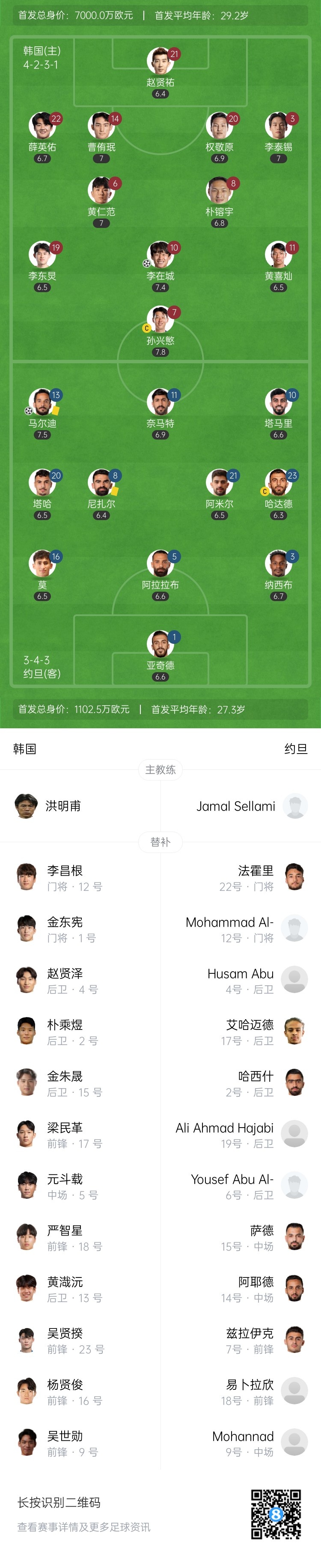 3月25日訊 18強(qiáng)賽B組第8輪,韓國坐鎮(zhèn)主場首爾世界杯體育場迎戰(zhàn)約旦。上半場,孫興慜角球助攻李在城閃擊破門,馬爾迪扳平。半場戰(zhàn)罷,韓國1-1約旦。