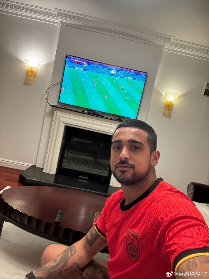 2025-03-25 21:01:23萊昂納多身穿國足球衣,在社媒打拼音為國足助威:Jiāyóu