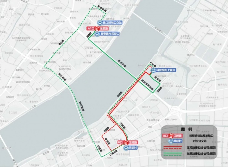 2.公交接駁:在飛虹路科技館街交叉口設(shè)置2條公交接駁專線將觀眾分別送至地鐵1號線江陵路站、地鐵4號線城星路站。