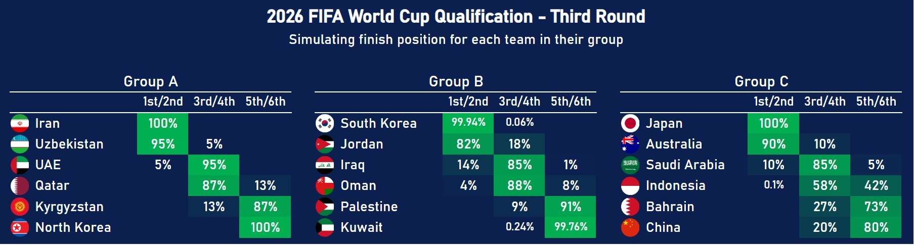 2025-03-26 14:00:22數(shù)據(jù)機構預測:中國80%概率無緣世界杯!印尼58%獲得附加賽資格