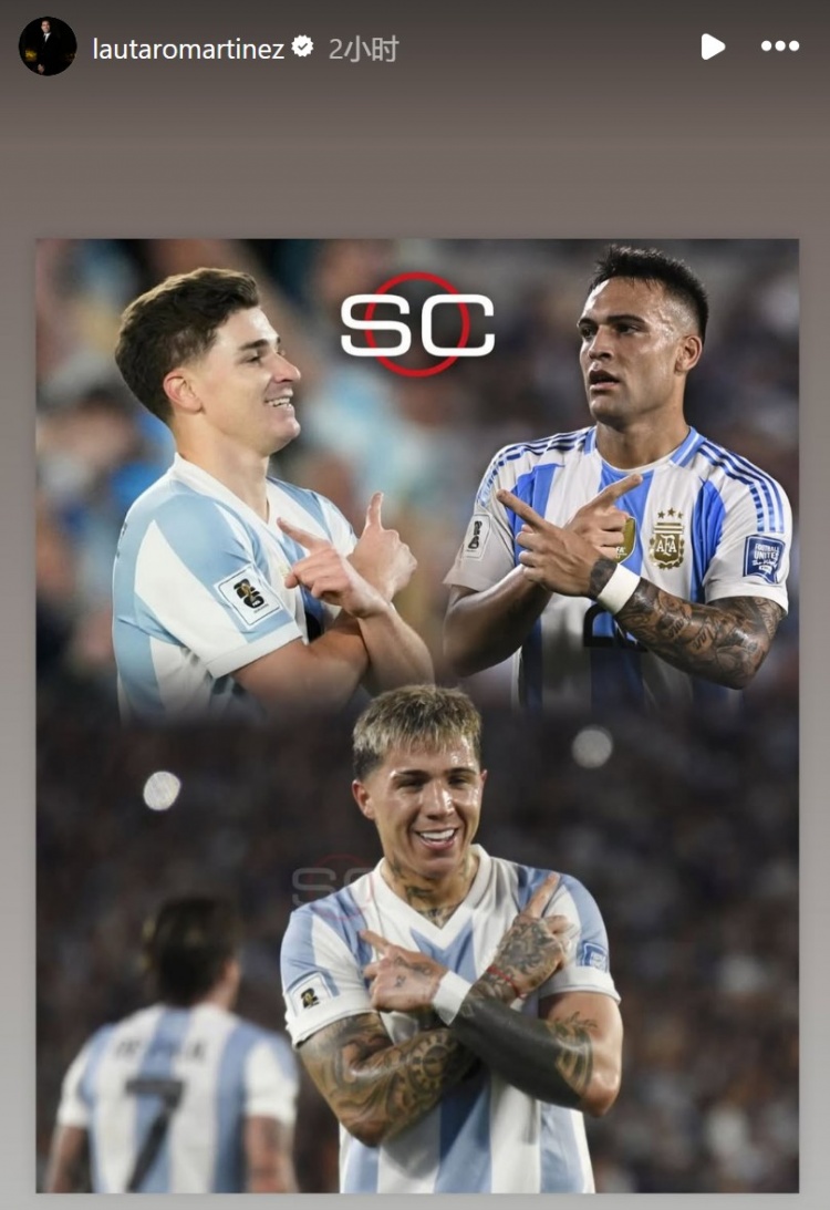 2025-03-26 14:01:42阿爾瓦雷斯&恩佐模仿勞塔羅慶祝動作,后者社媒轉(zhuǎn)發(fā)三人照片