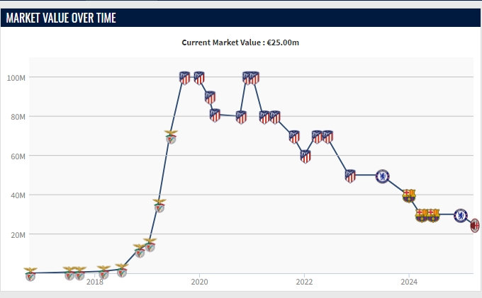 2025-03-26 21:02:24巔峰1億歐!25歲菲利克斯在米蘭10場1球,最新身價跌至2500萬歐