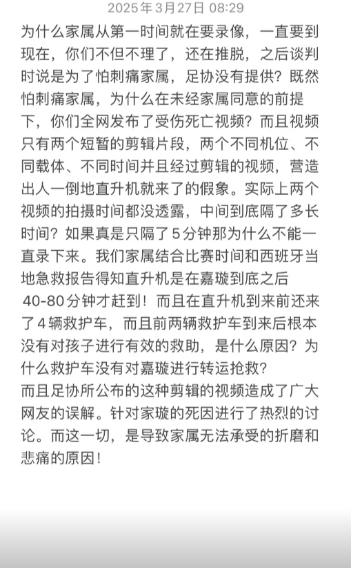 2025-03-27 21:02:15郭嘉璇家屬質(zhì)問北京足協(xié):為何視頻不連貫?直升機(jī)40-80分鐘才到