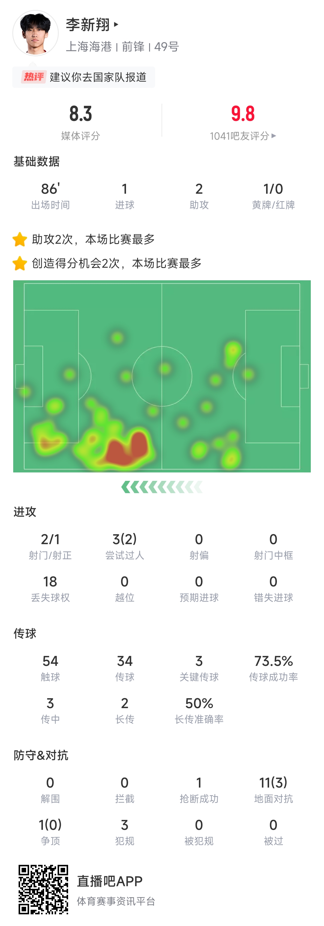 2025-03-29 00:08:05一戰(zhàn)成名!19歲李新翔中超首秀1射2傳,無(wú)解個(gè)人秀單挑防線處子球