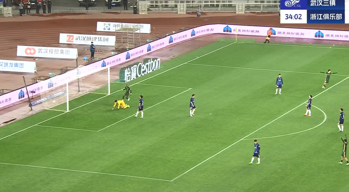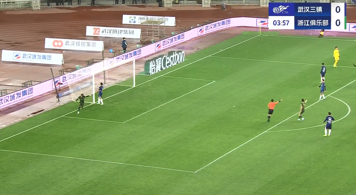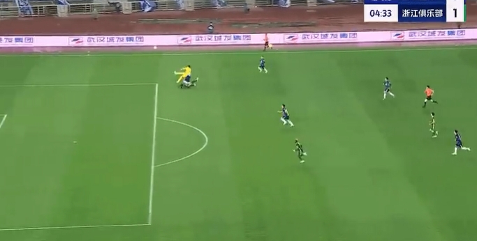 上半場補時9分鐘。半場戰(zhàn)罷,武漢三鎮(zhèn)0-4浙江隊。