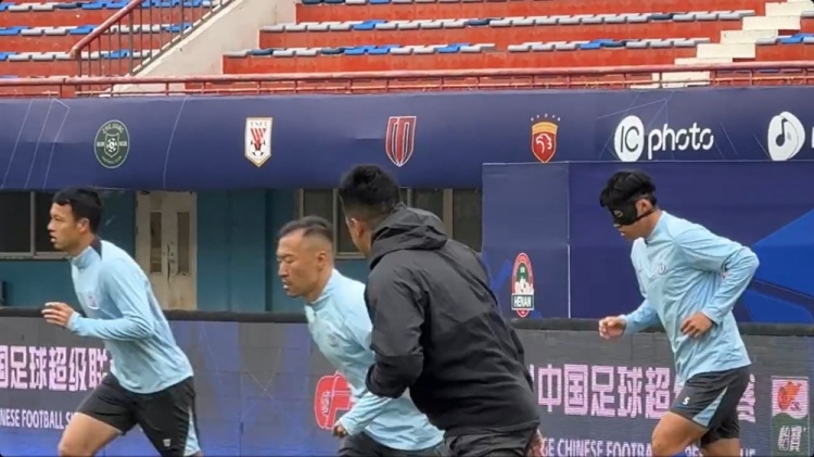 2025-03-29 00:12:20申花今天賽前踩場(chǎng)訓(xùn)練,中衛(wèi)朱辰杰戴面具參加