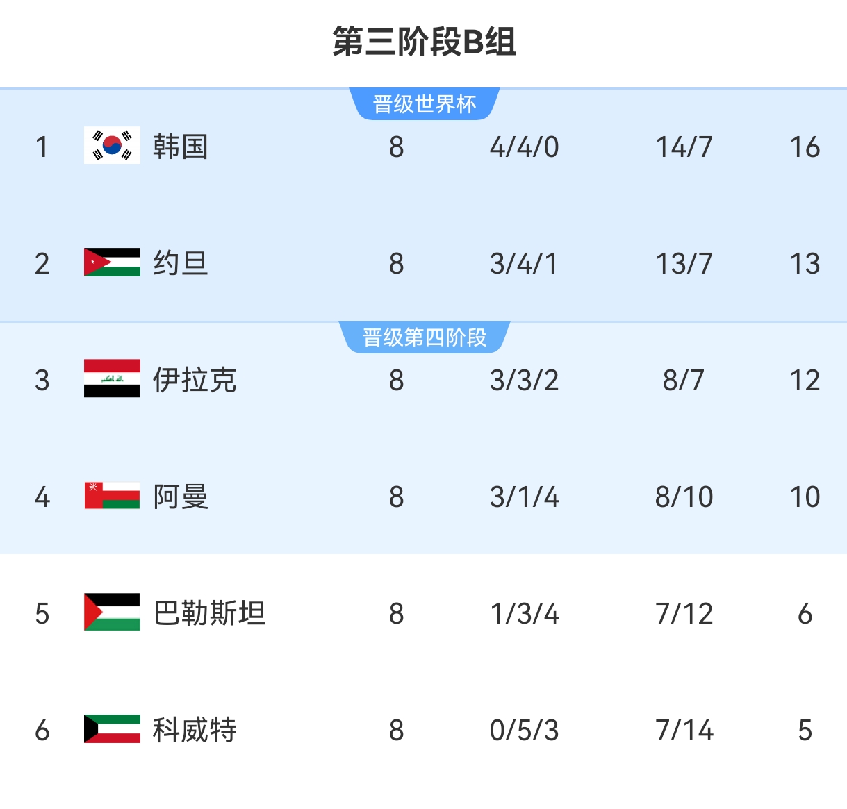 在3月的世預(yù)賽中,原本形勢(shì)大好的伊拉克2-2平了科威特,1-2遭巴勒斯坦絕殺。而爭(zhēng)2對(duì)手約旦拿了4分,一舉將積分反超。