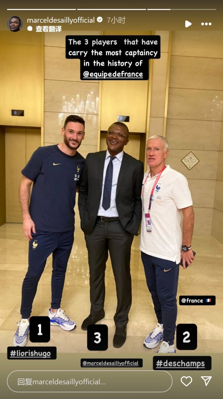 2025-03-29 00:12:57德塞利曬與德尚、洛里合照:擔(dān)任法國隊(duì)長次數(shù)最多的三名球員
