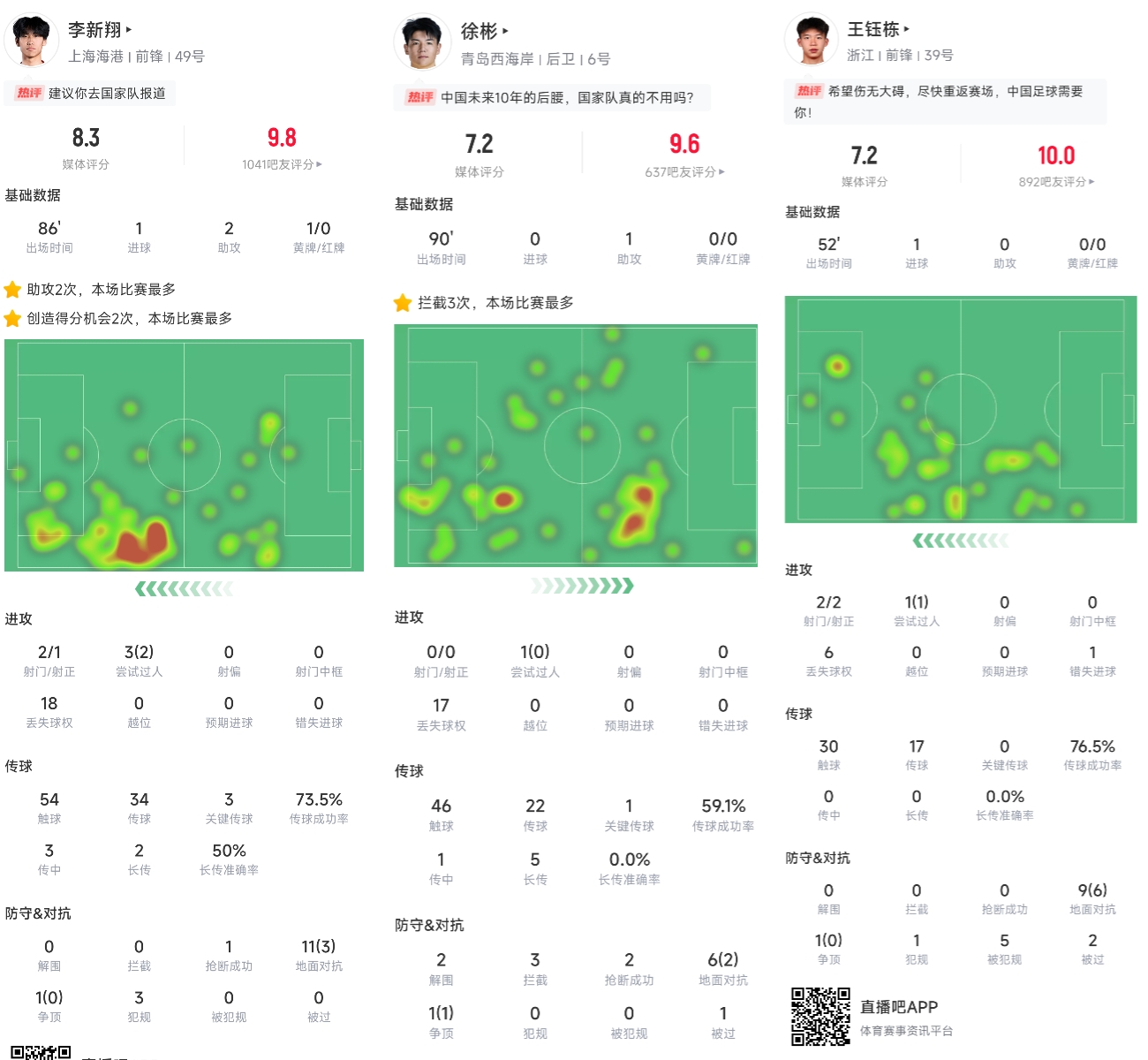 上海海港客場(chǎng)3-3戰(zhàn)平青島西海岸,19歲的海港小將李新翔首發(fā)迎來中超首秀,全場(chǎng)比賽1射2傳發(fā)揮亮眼,幫助海港搶下一分;青島西海岸20歲的后腰徐彬也表現(xiàn)出色,為阿齊茲送出一次助攻。