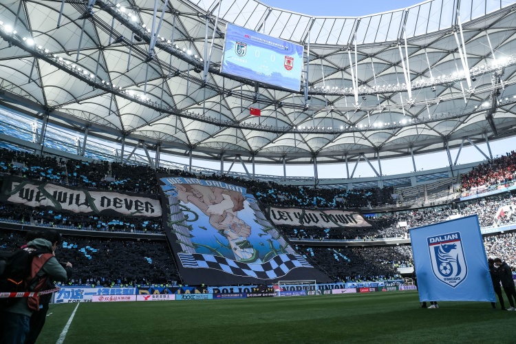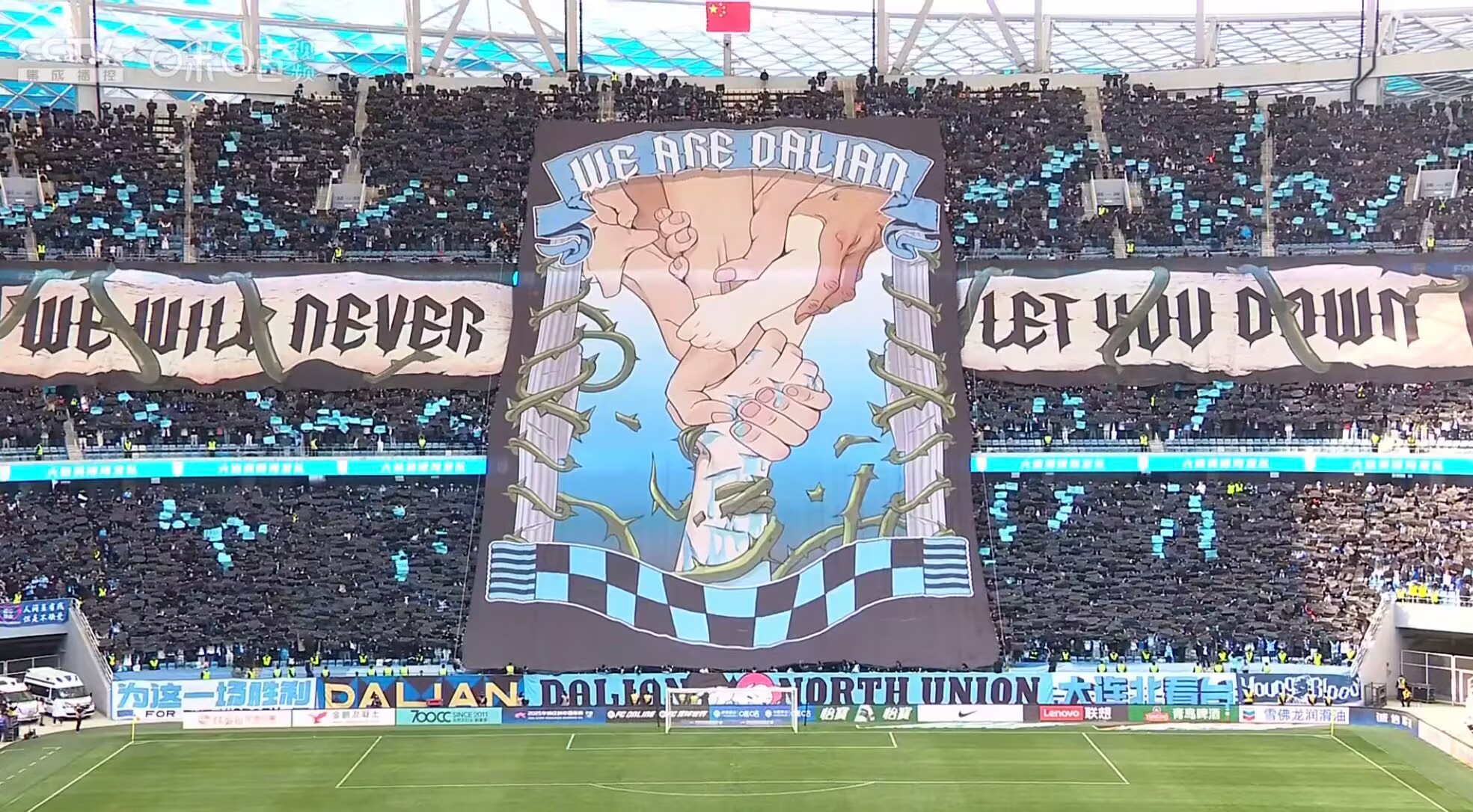 2025-03-29 21:05:33霸氣!東北德比前大連英博升起巨幅tifo——我們是大連