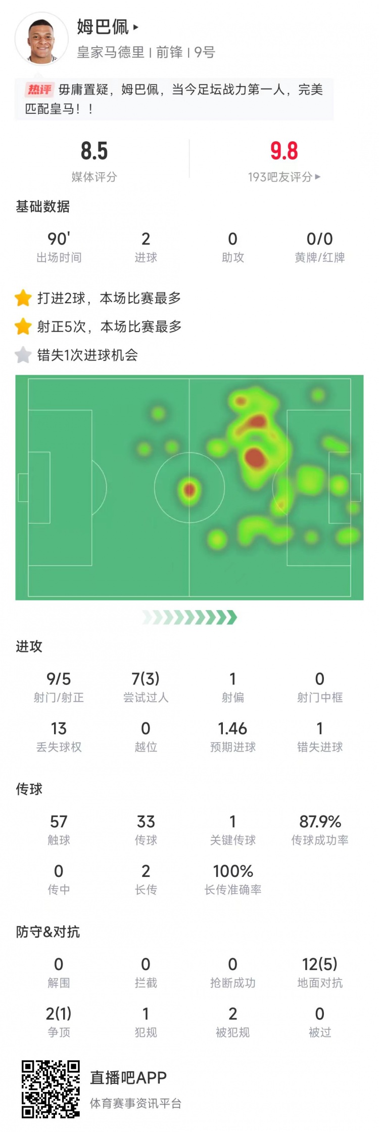 2025-03-30 07:00:31姆巴佩當選全場最佳球員:9次射門打進2球,7次過人3次成功