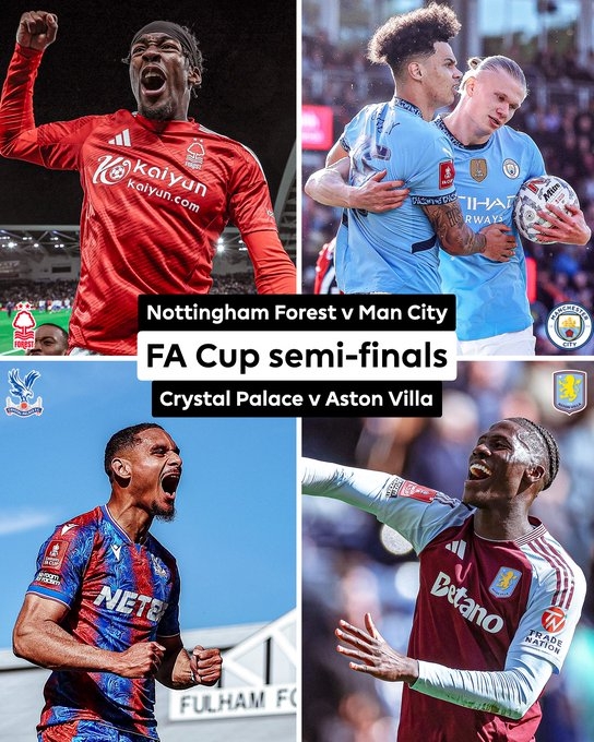 2025-03-31 07:00:44足總杯4強(qiáng)對(duì)陣出爐:曼城vs諾丁漢森林,水晶宮vs維拉