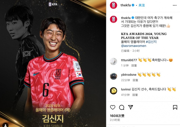 2025-03-31 14:00:19官方:34歲韓國女足名將池笑然當(dāng)選韓足協(xié)2024年度最佳女足球員