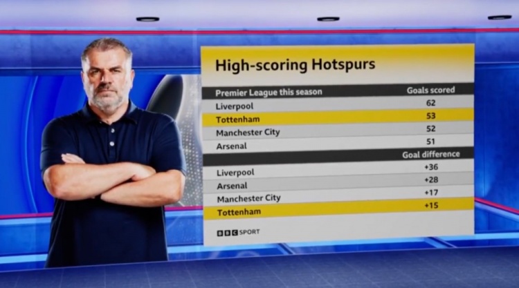 2025-02-23 14:00:52熱刺本賽季英超打進(jìn)53球僅次利物浦,凈勝球+15排名英超第四