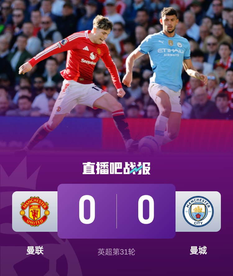 2025-04-07 00:04:512025年04月07日 曼聯(lián)0-0曼城近4場(chǎng)曼市德比不敗 藍(lán)月亮無(wú)緣連勝仍距前四1分