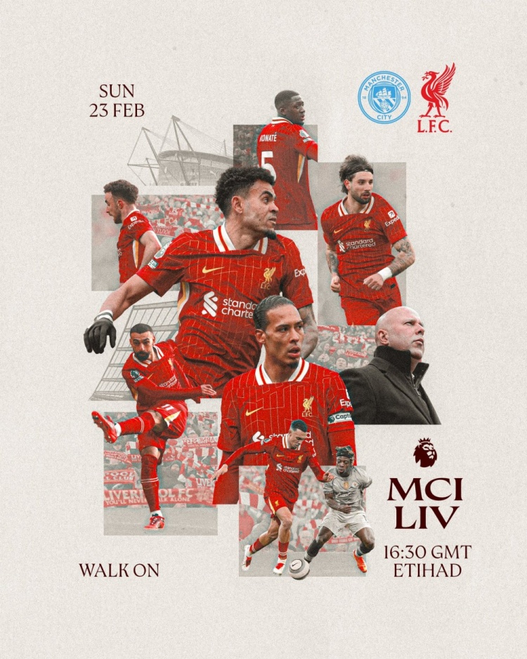 2025-02-23 21:01:16利物浦發(fā)布客戰(zhàn)曼城海報:斯洛特、范迪克、薩拉赫、迪亞斯出鏡